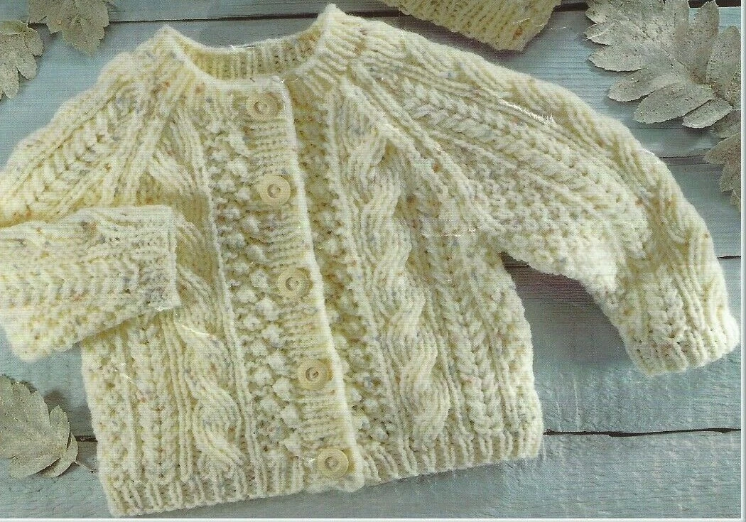 Aran Knitting Pattern Cardigan Sweater With Cables Baby Girls Boys 16 26 590 Ebay